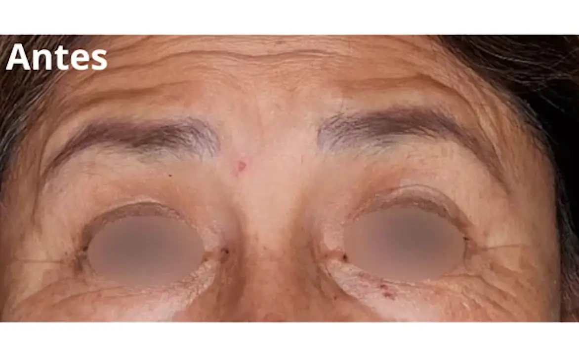 Actúa efectivamente en arrugas dinámicas del entrecejo, frente y patas de gallo, suavizando las líneas de expresión.